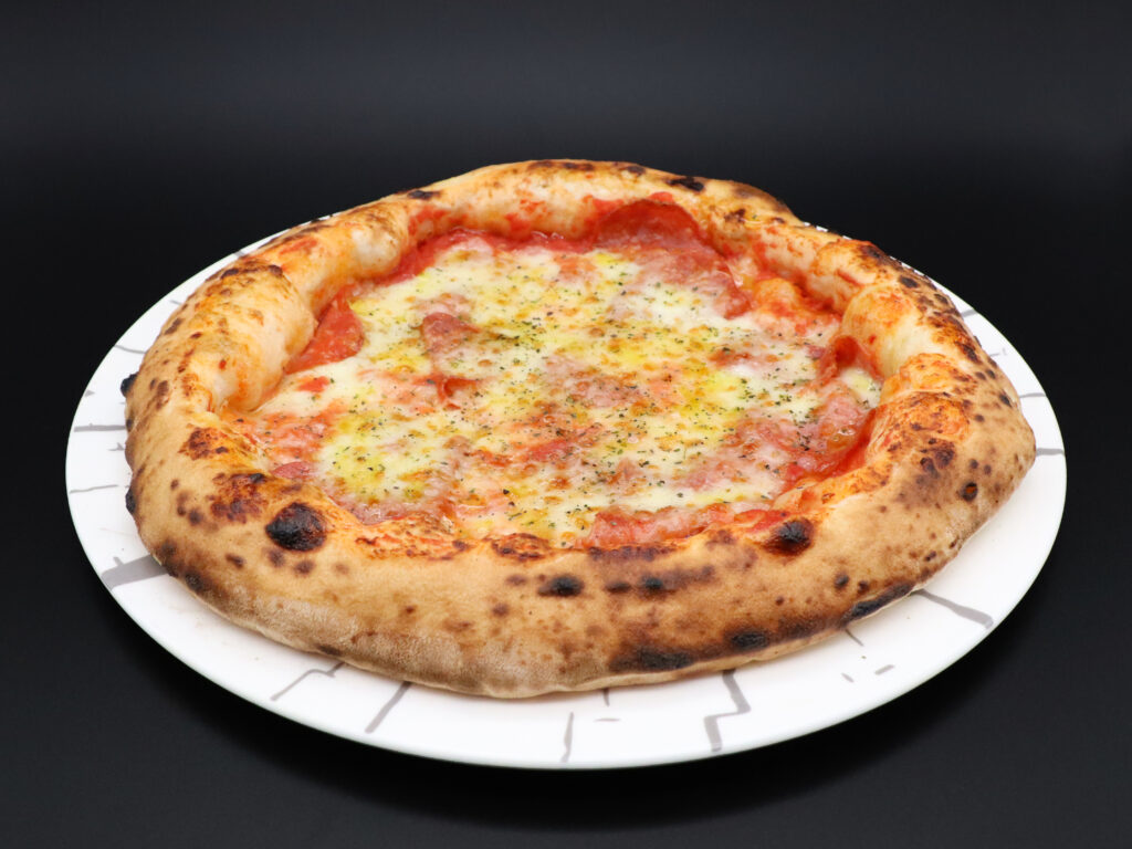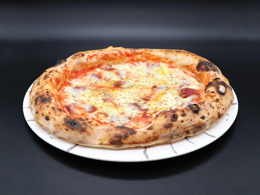 Pomodoro San Marzano, fiordilatte, scamorza affumicata, salsiccia stagionata di suino casertano, origano, olio evo