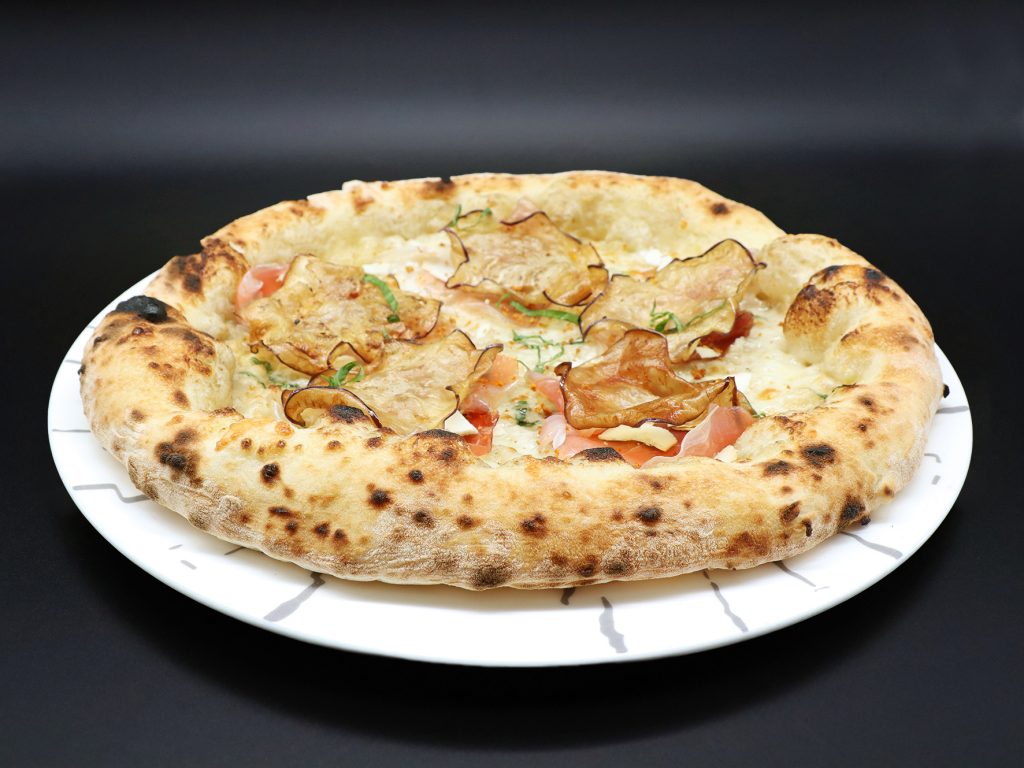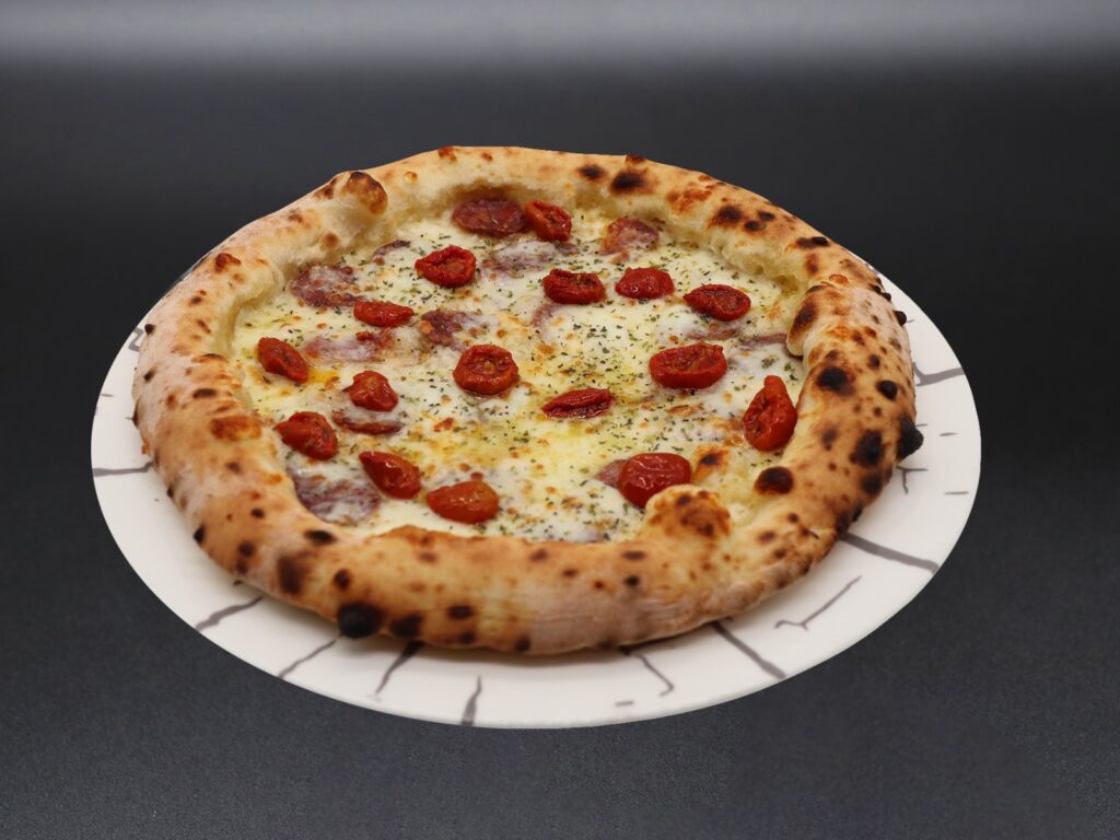Pomodoro San Marzano, fiordilatte, funghi champignon, speck IGP, origano